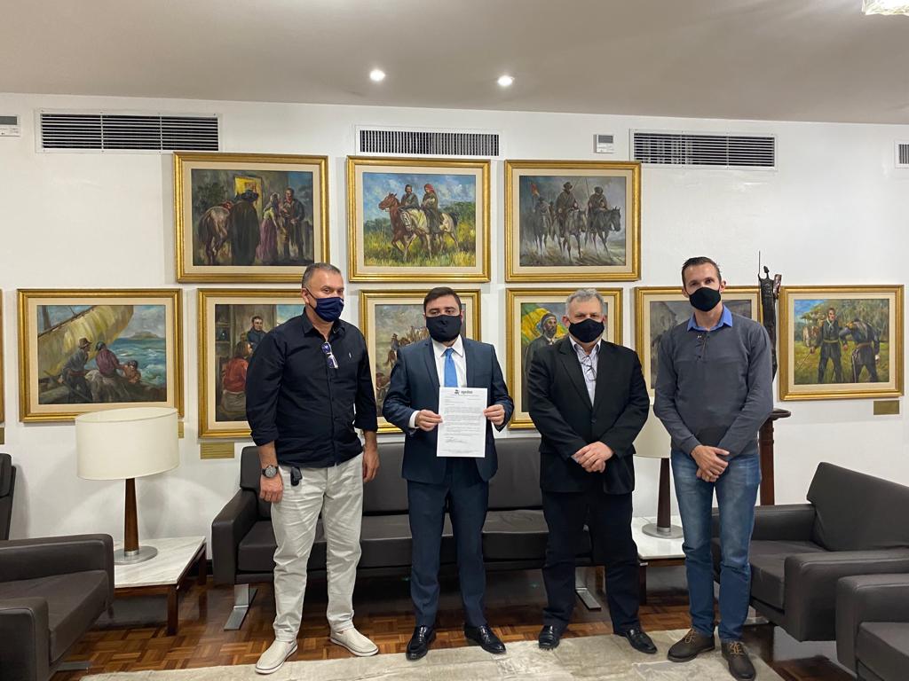 Presidente da Assembleia Legislativa do Estado do Rio grande do Sul, Deputado Estadual Gabriel Souza, recebeu, em seu gabinete, no dia 07/06/2021, pedido de apoio da Diretoria da AGEDAM, para preitear junto a Secretaria da Receita Estadual, a retirada da Substituição Tributária – ST, de todas embalagens de água mineral.